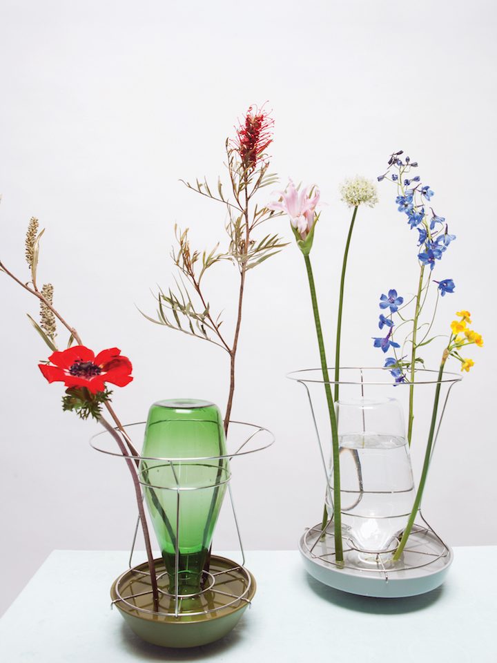 En 2011, Chris Kabel a développé le concept des hidden vases pour le journal espagnol The Plant. L’idée de départ a été de s’inspirer de la mangeoire pour poules : les fleurs sont disposées tout autour du réservoir d’eau et non à l’intérieur, donnant l’impression qu’elle poussent directement dans l’assiette. Le design studio belge Valérie_Objects édite les Hidden vases cette année; 2 tailles de vases sont disponibles chez melville avec 5 couleurs différentes. |