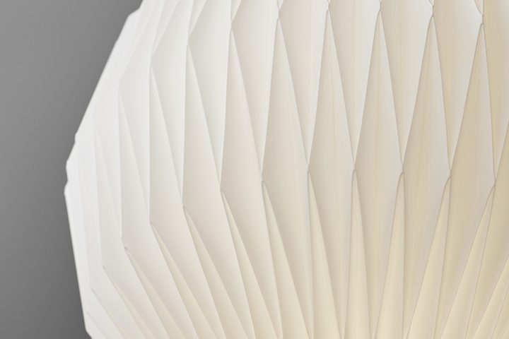 Les abat-jour sont encore entièrement fabriqués à la main avec une maitrise de la technique du plissage reconnue comme un véritable art; les feuilles de PVC sont d’abord plissées afin d’obtenir la forme désirée puis recourbées, Les suspensions sont lavables et antistatiques.